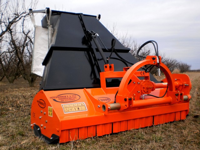 Καταστροφείς με σύστημα συλλογής και αποθηκεύσεις των κλαδιών, χόρτων, βιομάζας κτλ για παράγωγη pellets. Ο καταστροφέας f,s,r προσαρμόζεται σε όλους τους τύπους τρακτέρ ( από 45 hp και άνω) και αντί για κάδο συλλογής χρησιμοποιείτε χοάνη μεταλλική για την οδήγηση τον τεμαχισμένων ξυλώδη υλικών από τον χώρο θρυμματισμού μέσα σε μεγάλα τσουβάλια big ban όταν εργαζόμαστε σε δεντροκαλλιέργειες ενώ επίσης σε ανοιχτές καλλιέργειες μπορεί να προσαρμοστεί και πλατφόρμα – καρότσα μεταφοράς. Είναι ιδανικό μηχάνημα για τον τεμαχισμό όλων τον ξυλώδη υλικών διαμέτρου 10-14 εκατοστά. Εφαρμόζεται σε αμπελώνες, οπωρώνες, ελιές, σε ανοιχτές καλλιέργειες όπως καλαμποκιές, βαμβακιές κτλ όπως και σε πετρώδη εδάφη. Το σύστημα συλλογής ,μεταφοράς είναι έχτρα και προσαρμόζεται στο συγκεκριμένο τύπο καταστροφέα (F.S.R).